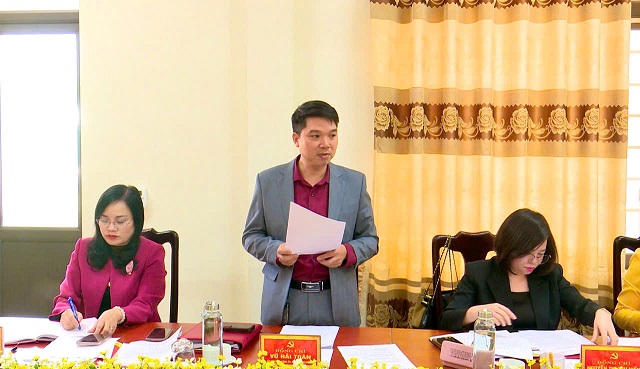 Đồng chí Vũ Hải Toàn - Phó Chủ tịch HĐND xã trình bày Tờ trình tại hội nghị.