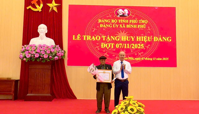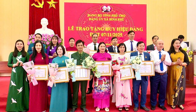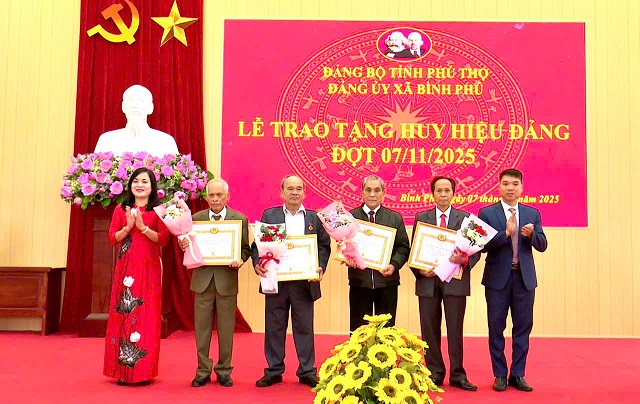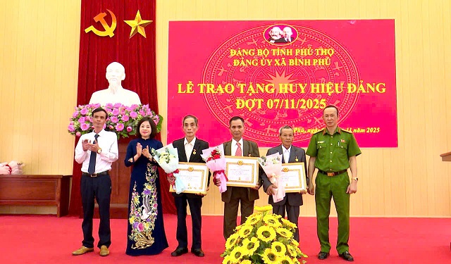 Trong đợt này xã Bình Phú có 3 Đảng viên vinh dự được nhận huy hiệu 60 năm tuổi Đảng: đảng viên Hà Văn Lạc sinh năm 1946 chi bộ Long Châu; đảng viên Nguyễn Văn Tuất sinh năm 1938 chi bộ Xóm Cầu; đảng viên Trần Văn Trang sinh năm 1942 Chi bộ 3 (thuộc xã Tiên Du cũ). Có 2 đảng viên nhận huy hiệu 55 tuổi Đảng: đảng viên Đái Văn Hợi sinh năm 1948 Chi bộ 8 (thuộc xã An Đạo cũ) ; đảng viên Hồ Thị Canh sinh năm 1948 Chi bộ 7 (thuộc xã An Đạo cũ). Có 4 đảng viên nhận huy hiệu 50 năm tuổi Đảng: đảng viên Lê Anh Đào sinh năm 1953 chi bộ Đình; đảng viên Đỗ Văn Cát sinh năm 1948 Chi bộ Gai Hạ; đảng viên Hồ Văn Sỹ sinh năm 1949 Chi bộ Lũng Hàng ; Đảng viên Phạm Ngọc Trình sinh năm 1951 Chi bộ 1( thuộc xã Tiên Du cũ). Có 3 đảng viên nhận huy hiệu 45 năm tuổi Đảng là đảng viên Trần Văn Chất sinh năm 1957 chi bộ 1 (thuộc xã Tiên Du cũ); đảng viên Vũ Quang Huy sinh năm 1953 chi bộ 10 (thuộc xã Tiên Du cũ); đảng viên Đào Kim Sơn sinh năm 1957 chi bộ 4 ( thuộc xã An Đạo cũ) và 11 đảng viên được nhận huy hiệu 30 năm tuổi Đảng.