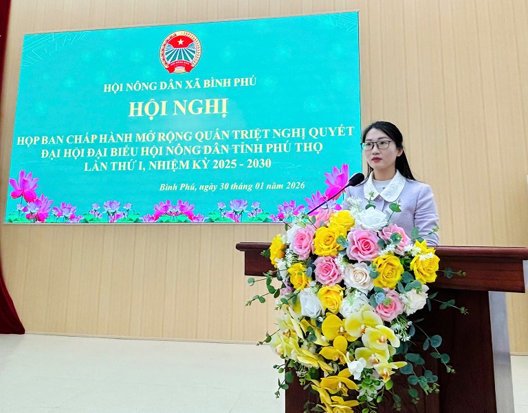 Sáng ngày 30/01/2026., Hội Nông dân xã Bình Phú tổ chức Hội nghị Ban chấp hành mở rộng, thành phần các đồng chí trong Ban Thường vụ, Ban chấp hành, Chi hội trưởng Hội Nông dân xã. Đồng chí Phạm Mỹ Linh – Uỷ viên BCH Hội Nông dân tỉnh Phú Thọ, Đảng uỷ viên, Phó chủ tịch UBMTTQ xã, Chủ tịch Hội Nông dân xã chủ trì hội nghị.
