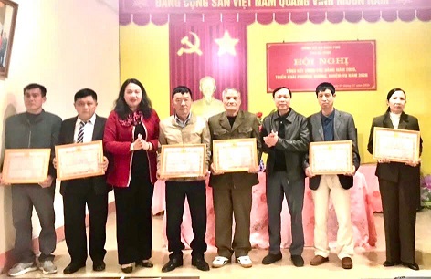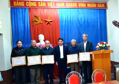Đồng chí Hà Xuân Huấn - Uỷ viên BTV Đảng uỷ, Phó Chủ tịch UBND xã dự sinh hoạt và trao thưởng tại khu dân cư.
