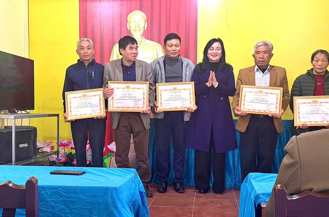 Đồng chí Nguyễn Thị Thu Trang - Uỷ viên BTV Đảng uỷ, Phó Chủ tịch UBND xã dự sinh hoạt và trao thưởng tại khu dân cư.