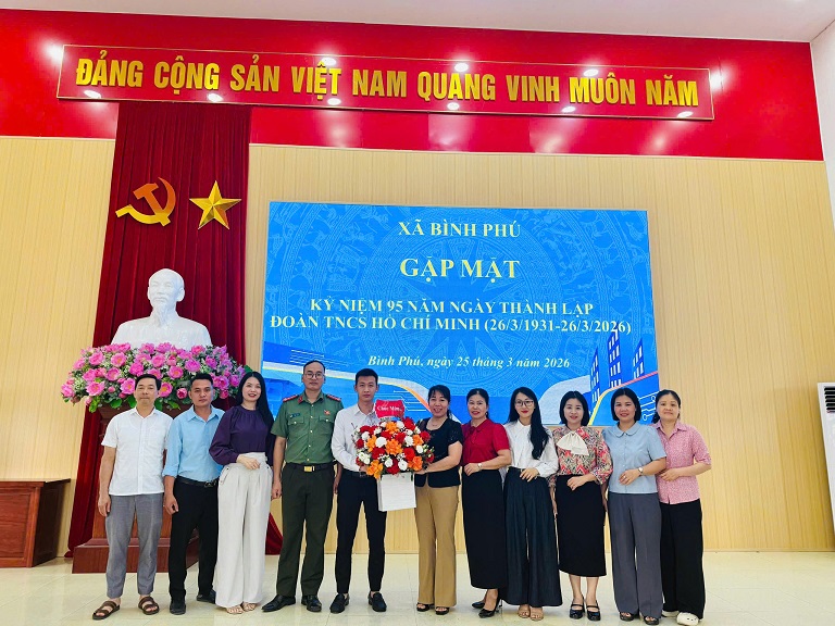 Chiều ngày 25/3 xã Bình Phú tổ chức gặp mặt kỷ niệm 95 năm ngày thành lập Đoàn TNCS Hồ Chí Minh ( 26/3/1931 – 26/3/2026). Đồng chí Dương Thị Kim Dung – Phó Bí thư Thường trực Đảng ủy xã Bình Phú đã tặng hoa chúc mừng và mong muốn trong thời gian tới Ban Chấp hành Đoàn Thanh niên xã Bình Phú tiếp tục phát huy truyền thống vẻ vang của Đoàn và những kết quả đạt được trong thời gian qua; đoàn kết, chủ động, sáng tạo để hoàn thành tốt nhiệm vụ được giao; chú trọng bồi dưỡng, giáo dục lý tưởng cách mạng cho đoàn viên, thanh niên, giới thiệu những quần chúng ưu tú cho Đảng xem xét kết nạp; triển khai thực hiện tốt các phong trào của Đoàn và các chương trình đồng hành với thanh niên.