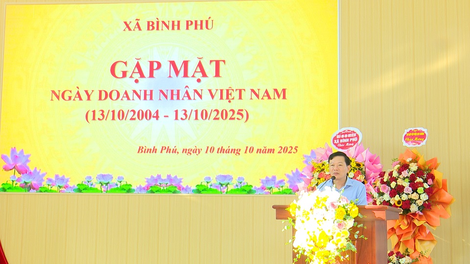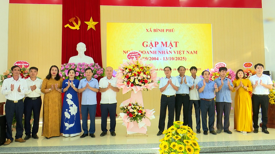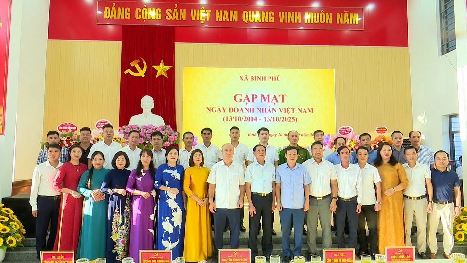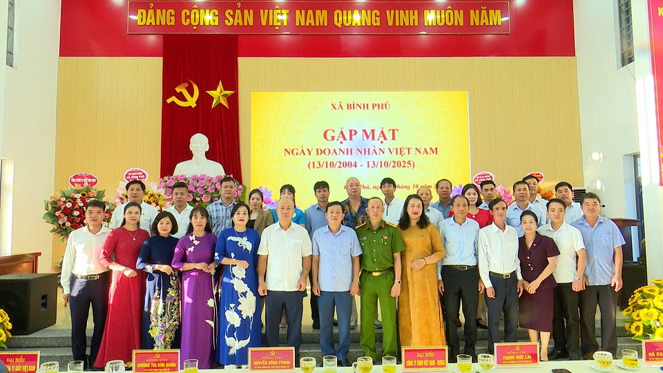 Ngày 10/10/2025, xã Bình Phú tổ chức gặp mặt các doanh nhân trên địa bàn xã nhân ngày doanh nhân Việt Nam (13/10/2004 – 13/10/2025). Dự buổi gặp mặt có đồng chí Nguyễn Hồng Phong – Bí thư Đảng uỷ, Chủ tịch HĐND xã; đồng chí Trịnh Đức Lai – Phó Bí thư Đảng uỷ, Chủ tịch UBND xã; đồng chí Dương Thị Kim Dung – Phó Bí thư Thường trực Đảng uỷ; các đồng chí trong Ban Thường vụ Đảng uỷ; Trưởng các phòng, đơn vị chuyên môn của xã; Văn phòng Đảng uỷ; Văn phòng HĐND&UBND xã và đại biểu Tổng công ty Giấy Việt Nam; Ban quản lý khu công nghiệp Tử Đà - An Đạo các chủ doanh nghiệp, cơ sở sản xuất kinh doanh, hợp tác xã trong và ngoài xã.