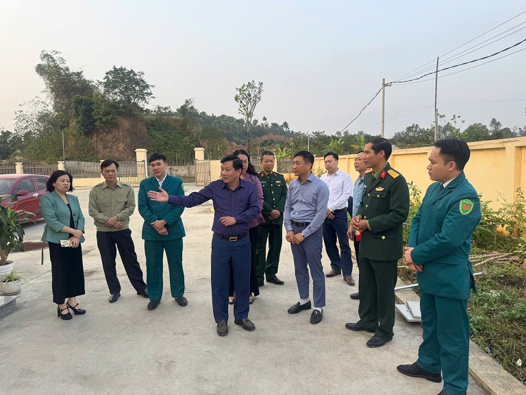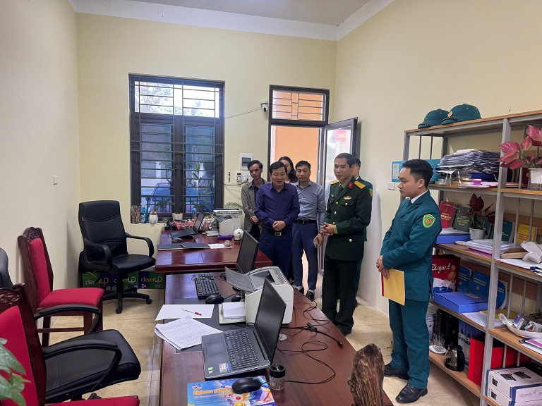 các đồng chí lãnh đạo thăm cơ sở vật chất của đơn vị.