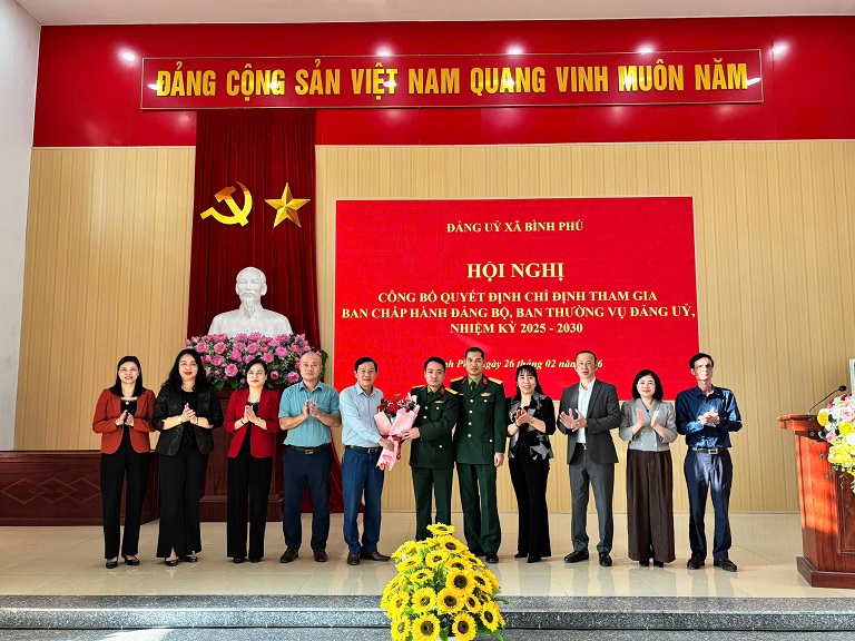 Nhằm kiện toàn tổ chức bộ máy, đáp ứng yêu cầu nhiệm vụ chính trị trong giai đoạn mới, chiều ngày 26/2/2026, Đảng ủy xã Bình Phú tổ chức Hội nghị Ban Chấp hành để công bố Quyết định của Ban Thường vụ Tỉnh ủy Phú Thọ về việc chỉ định Ủy viên Ban Chấp hành, Ban Thường vụ Đảng bộ xã Bình Phú, nhiệm kỳ 2025 – 2030. Tại hội nghị, Thường trực Đảng ủy xã đã công bố và trao Quyết định cho đồng chí Thượng tá Triệu Quang Thắng – Chỉ huy trưởng Ban Chỉ huy quân sự xã được chỉ định tham gia Ban Chấp hành, Ban Thường vụ Đảng uỷ xã Bình Phú, nhiệm kỳ 2025 – 2030.