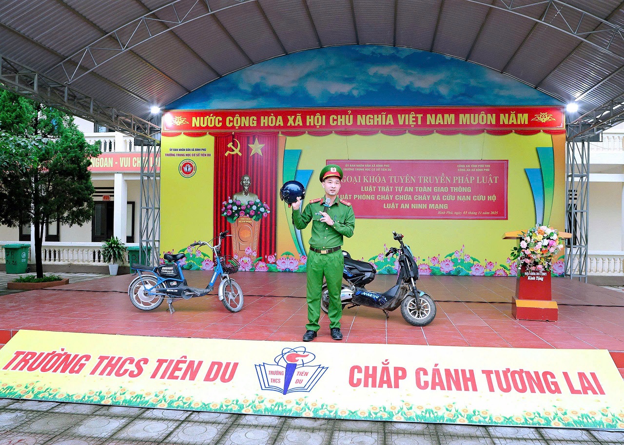 Ngày 03/11/2025, Trường THCS Tiên Du phối hợp với Công an xã Bình Phú tổ chức chương trình ngoại khóa tuyên truyền về Luật Giao thông đường bộ, Luật Phòng cháy chữa cháy và cứu nạn cứu hộ, Luật An ninh mạng cho toàn thể cán bộ, giáo viên và học sinh trong trường.