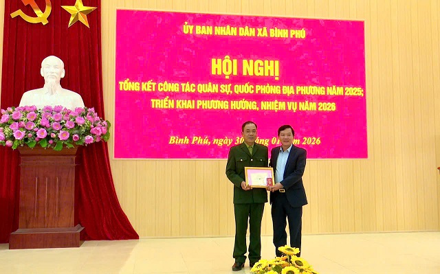 Tổng kết công tác Quân sự quốc phòng địa phương năm 2025, UBND xã Bình Phú tặng Giấy khen cho 13 cá nhân đã “Hoàn thành xuất sắc nhiệm vụ Quân sự, Quốc phòng địa phương năm 2025”.