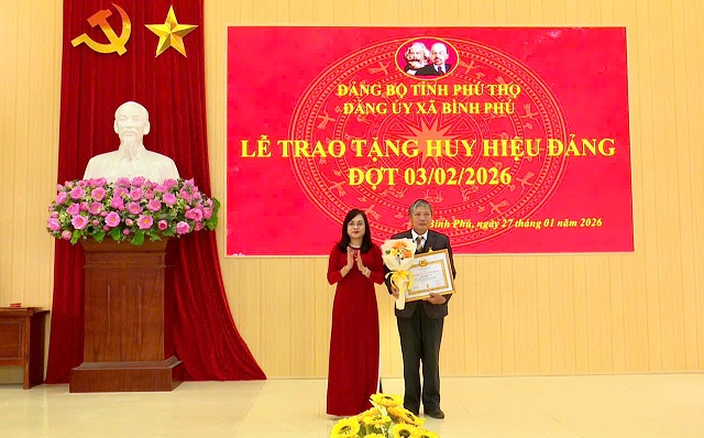 Ngày 27/01/2026, Đảng uỷ xã Bình Phú tổ chức trao huy hiệu đảng đợt 3/2/2026 cho các đảng viên cao tuổi trong toàn đảng bộ. Tham dự buổi lễ có đồng chí Nguyễn Hồng Phong – Bí thư Đảng uỷ, Chủ tịch HĐND xã; đồng chí Trịnh Đức Lai - Phó Bí thư Đảng uỷ, Chủ tịch UBND xã; đồng chí Dương Thị Kim Dung – Phó Bí thư Thường trực Đảng uỷ; các đồng chí trong Ban Thường vụ Đảng uỷ; các đồng chí Uỷ viên Ban Chấp hành Đảng bộ phụ trách Chi bộ có đảng viên được nhận huy hiệu đợt này; đại diện Ban xây dựng Đảng, Uỷ ban Kiểm tra Đảng uỷ; Văn phòng Đảng uỷ; các đồng chí trong Ban chi uỷ chi bộ và các đảng viên được nhận huy hiệu đợt này.