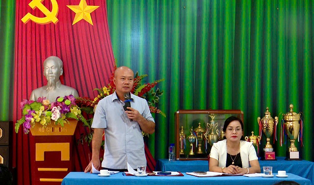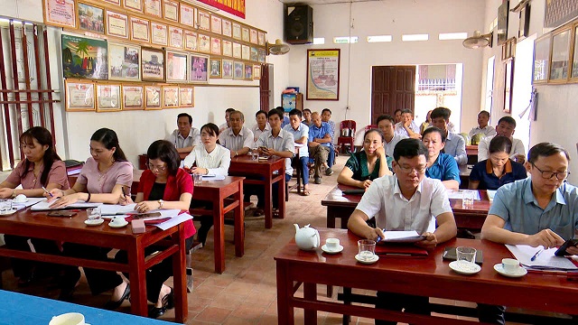 Đồng chí Nguyễn Hồng Phong - Bí thư Đảng uỷ, Chủ tịch HĐND xã; đồng chí Dương Thị Kim Dung – Phó Bí thư TT Đảng uỷ chủ trì hội nghị.