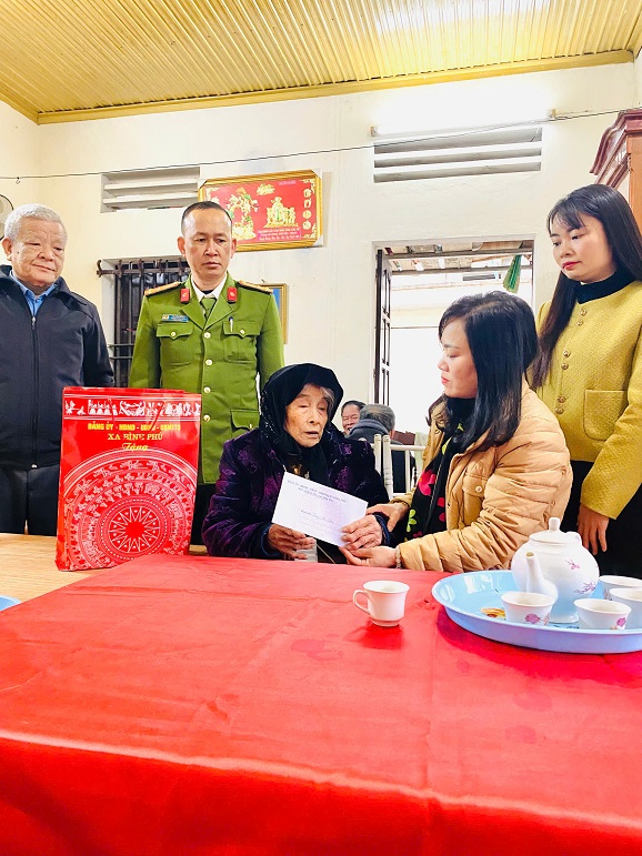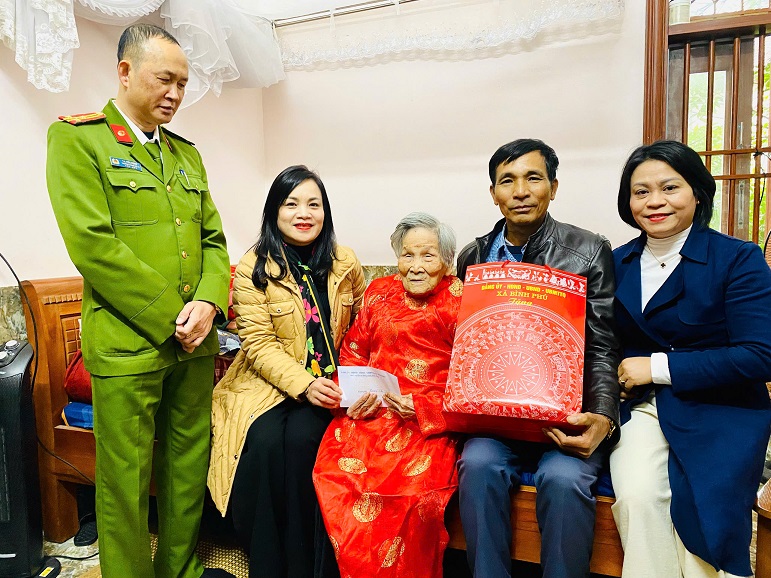 Đoàn công tác đã tới thăm, tặng quà và chúc thọ mẹ Việt Nam anh hùng Nguyễn Thị Chỉ, sinh năm 1922; các cụ: Nguyễn Thị Chuyên, sinh năm 1925; Đỗ Thi Năm, sinh năm 1925; Hoàng Thị Lan, sinh năm 1921; Lương Thị An (mẹ liệt sĩ), sinh năm 1922 ở khu 5 (Bình Phú cũ); Thăm, tặng quà người khuyết tật Đỗ Văn Tích, sinh năm 1935, ở khu 5 (Bình Phú cũ).
