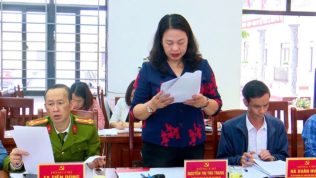 Đồng chí Nguyễn Thị Thu Trang - Uỷ viên BTV Đảng uỷ, Phó Chủ tịch UBND xã phát biểu ý kiến tại hội nghị.