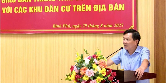 Chiều ngày 29/8/2025, UBND xã Bình Phú tổ chức hội nghị giao ban với các khu dân cư trên địa bàn tháng 8 năm 2025. Dự hội nghị có đồng chí Trịnh Đức Lai - Phó Bí thư Đảng uỷ, Chủ tịch UBND xã; đồng chí Nguyễn Thị Thu Trang - Uỷ viên Ban Thường vụ Đảng uỷ, Phó Chủ tịch UBND xã; đồng chí Hà Xuân Huấn - Uỷ viên Ban Thường vụ Đảng uỷ, Phó Chủ tịch UBND xã; các đồng chí lãnh đạo các phòng, đơn vị chuyên môn của xã; các đồng chí Trưởng khu dân cư trên địa bàn.