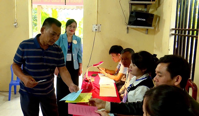 Đồng chí Dương Thị Kim Dung - Phó Bí thư Thường trực Đảng uỷ xã kiểm tra tại các Tổ bầu cử.