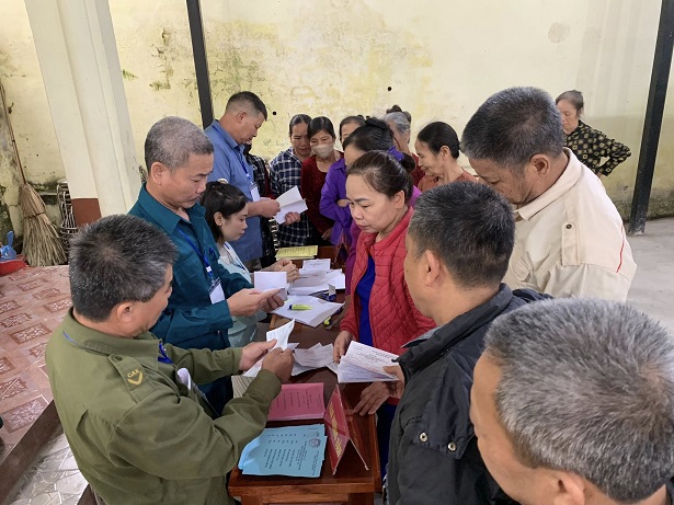 Đồng chí Trịnh Đức Lai - Phó Bí thư Đảng uỷ, Chủ tịch UBND xã dự lễ khai mạc bầu cử tại khu Gai Hạ.