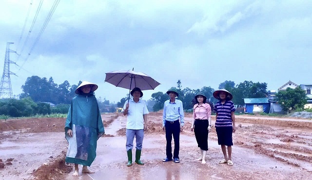 Đồng chí Trịnh Đức Lai- Phó Bí thư Đảng uỷ, Chủ tịch UBND xã; đồng chí Hà Xuân Huấn- Uỷ viên Ban Thường vụ Đảng uỷ, Phó Chủ tịch UBND xã cùng lãnh đạo, chuyên viên phòng Kinh tế đi kiểm tra tình hình ngập úng trên địa bàn.