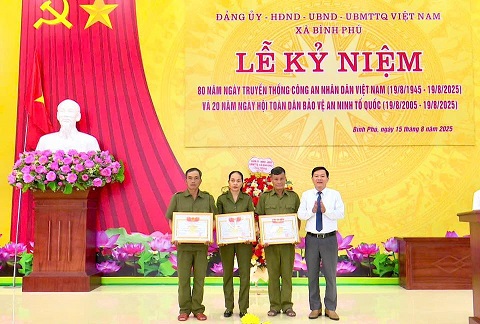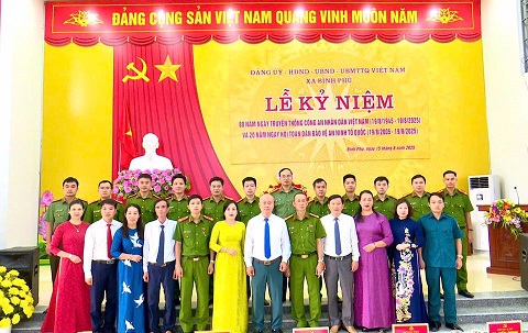 Ngày 15/8/2025, Đảng uỷ, HĐND, UBND, UBMTTQ Việt Nam xã Bình Phú long trọng tổ chức Lễ kỷ niệm 80 năm Ngày truyền thống công an nhân dân (CAND) (19/8/1945 - 19/8/2025) và 20 năm Ngày hội toàn dân bảo vệ an ninh Tổ quốc (ANTQ) (19/8/2005 - 19/8/2025). Tới dự lễ kỷ niệm có đồng chí Nguyễn Hồng Phong – Bí thư Đảng uỷ, Chủ tịch HĐND xã; đồng chí Trịnh Đức Lai – Phó Bí thư Đảng uỷ, Chủ tịch UBND xã; đồng chí Dương Thị Kim Dung – Phó Bí thư Thường trực Đảng uỷ xã; các đồng chí Uỷ viên Ban Thường vụ Đảng uỷ xã; Lãnh đạo các cơ quan, đơn vị; các Ban HĐND xã; Lãnh đạo, cán bộ Công an xã; Lãnh đạo Hội cựu Công an nhân dân; Đại diện Lãnh đạo các Trường: Mầm non, Tiểu học, THCS, THPT trên địa bàn xã; Tổ trưởng Tổ an ninh trật tự, Trưởng ban công tác Mặt trận các Khu dân cư trên địa bàn xã; Đại diện các tập thể được khen thưởng