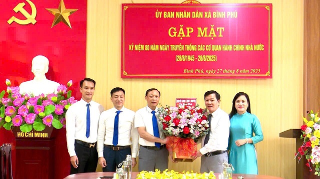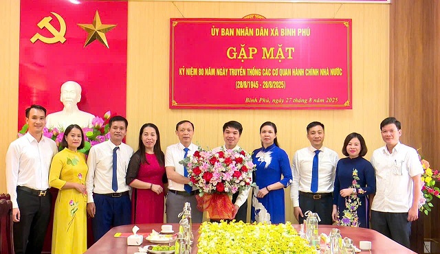 Nhân dịp kỷ niệm 80 năm ngày truyền thống các cơ quan hành chính nhà nước (28/8/1945 - 28/8/2025) chiều ngày 27/8/2025, UBND xã Bình Phú tổ chức buổi gặp mặt kỷ niệm. Dự buổi gặp mặt có đồng chí Trịnh Đức Lai – Phó Bí thư Đảng uỷ, Chủ tịch UBND xã; đồng chí Dương Thị Kim Dung – Phó Bí thư Thường trực Đảng uỷ; các đồng chí Uỷ viên Ban Thường vụ Đảng uỷ; Lãnh đạo và cán bộ các phòng, cơ quan, đơn vị: Văn phòng HĐND&UBND, phòng Kinh tế, phòng Văn hoá - Xã hội; đồng chí Giám đốc Trung tâm dịch vụ sự nghiệp công; đồng chí Phó Giám đốc Trung tâm phục vụ hành chính công.
