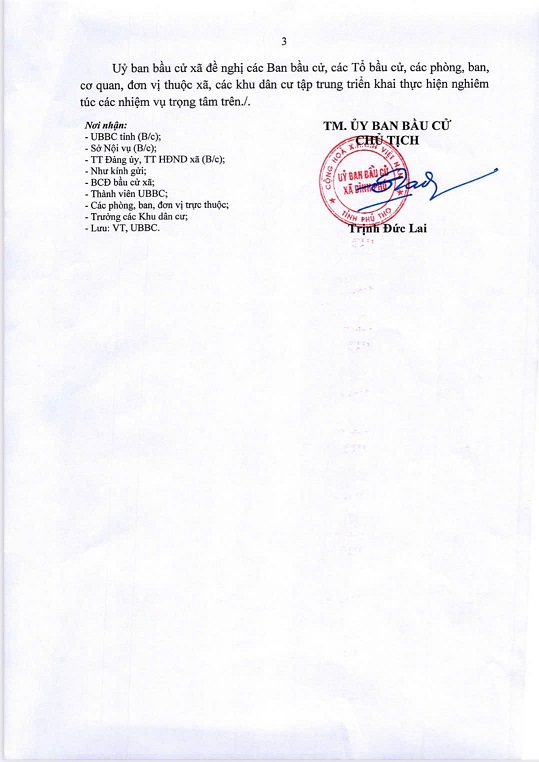 THÔNG BÁO Phân công nhiệm vụ các thành viên Ủy ban bầu cử xã Bình Phú