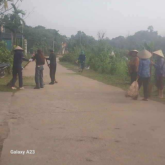 Thiết thực chào mừng Đại hội Đại biểu toàn quốc lần thứ XlV của Đảng các khu dân cư trên địa bàn xã Bình phú tổ chức ra quân tổng vệ sinh đường làng ngõ xóm khuôn viên nhà văn hóa.