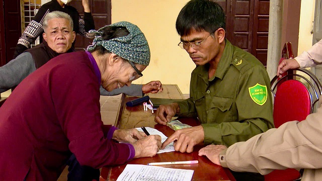 Đồng chí Nguyễn Thị Thu Trang - Uỷ viên BTV Đảng uỷ, Phó Chủ tịch UBND xã trao quà cho các đối tượng.